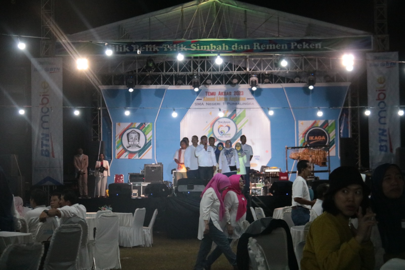 PURBALINGGA, INFO – Lapangan SMA Negeri 1 Purbalingga dipenuhi ribuan alumni dari tahun 1964 hingga tahun 2023. Selain dimeriahkan dengan berbagai hiburan, acara pada Sabtu (23/9) malam tersebut juga digelar pameran lukisan di Aula SMAN 1 Purbalingga karya beberapa alumni.