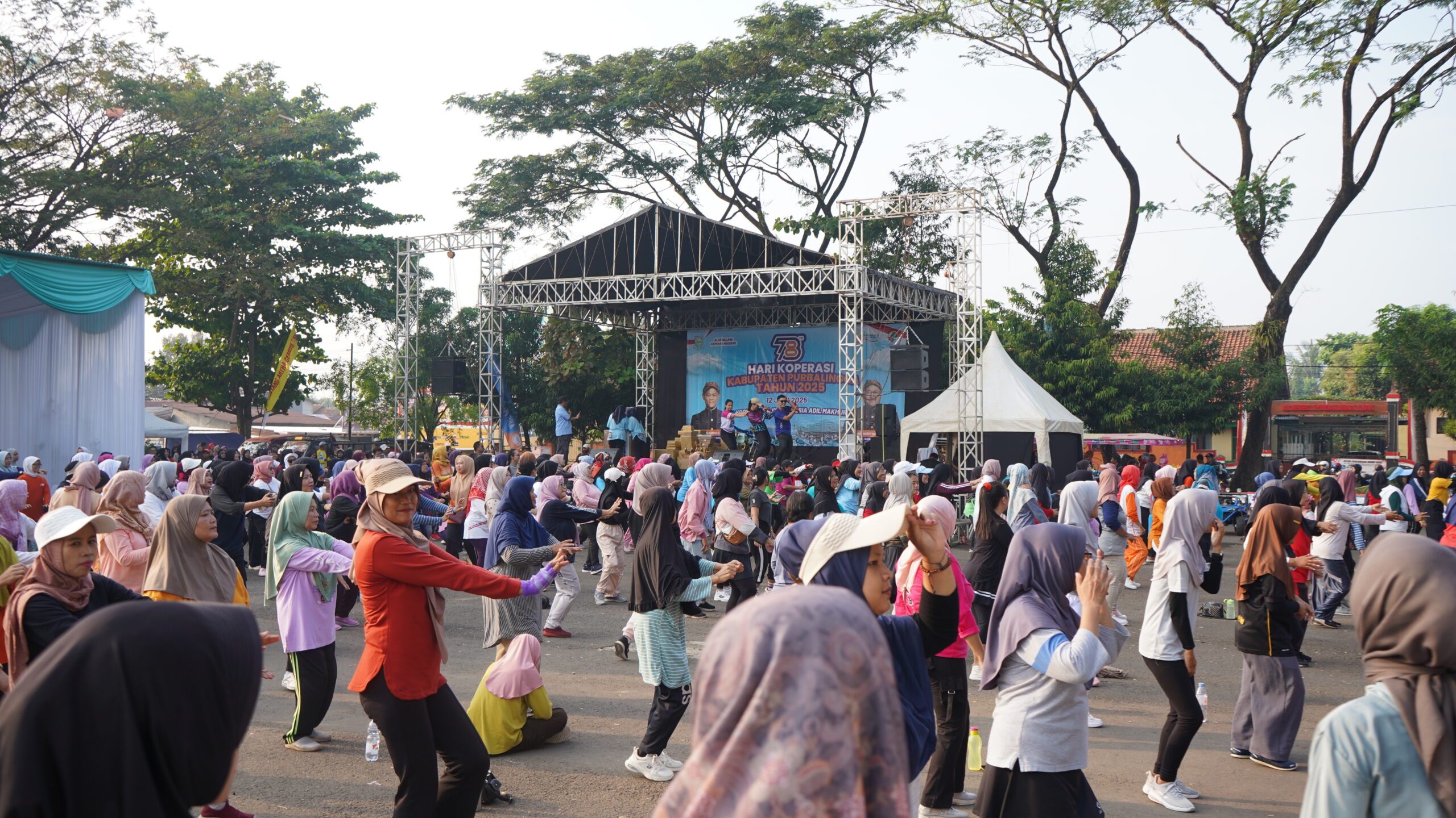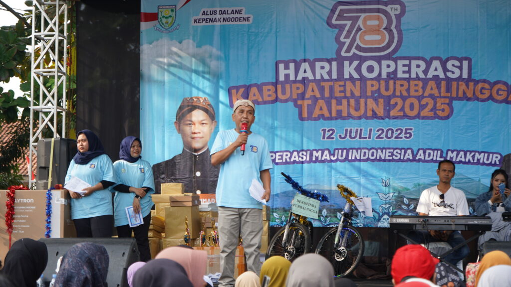 PURBALINGGA – Semangat kebersamaan membuncah di Halaman GOR Goentoer Darjono saat ribuan warga tumpah ruah mengikuti kegiatan Senam Sehat dan Pesta Rakyat, Minggu pagi (27/7/2025). Acara ini menjadi penutup rangkaian peringatan Hari Koperasi ke-78 tingkat Kabupaten Purbalingga yang digelar sejak awal Juli.