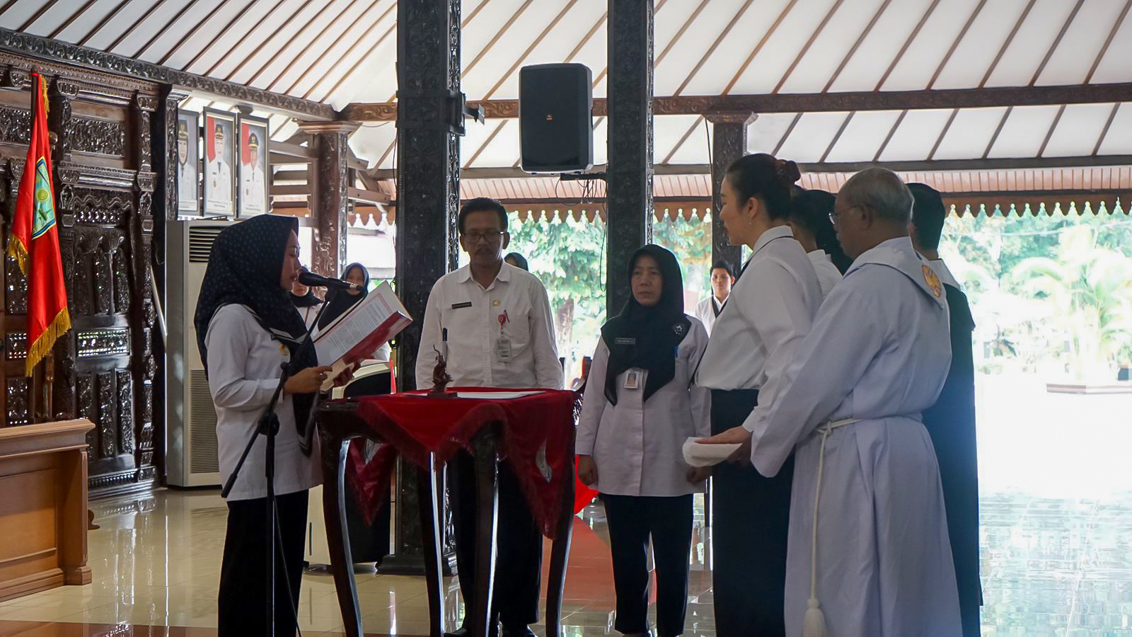 Dengan dilantiknya para ASN diharapkan mampu melaksanakan tugas sebagai ASN dengan penuh komitmen dan tanggung jawab. Hal tersebut disampaikan oleh Bupati Tiwi ketika sambutan pengambilan sumpah/janji pelantikan.