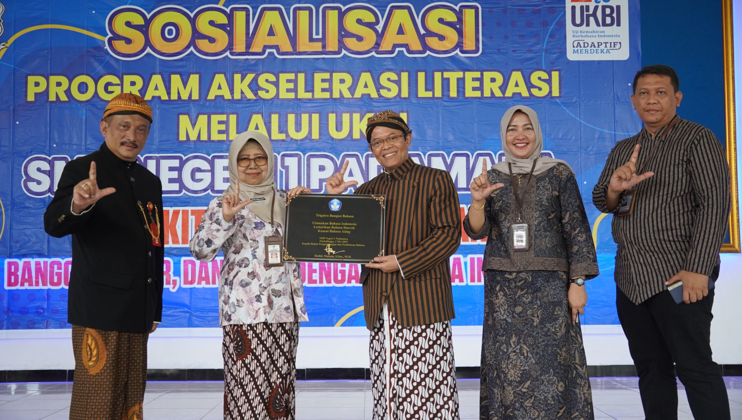 Salah satu bentuk penghargaan yang diberikan adalah Apresiasi Giat UKBI Adaptif Merdeka, sebuah program nasional untuk mengukur kompetensi berbahasa Indonesia secara digital dan adaptif. SMPN 1 Padamara menjadi salah satu penerima penghargaan tersebut untuk ketiga kalinya, menegaskan konsistensi sekolah dalam penerapan literasi kebahasaan.