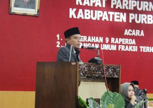 PURBALINGGA, Bupati Purbalingga Tasdi, SH., MM. menyerahkan Sembilan Rancangan Peraturan Daerah (Raperda) ke DPRD Senin (24/7) malam bertempat di Ruang Paripurna DPRD. Rapat yang dilakukan secara maraton juga mengagendakan Pandangan Umum Fraksi yang berjumlah tujuh Fraksi dilanjutkan dengan Jawaban Bupati atas Pandangan Umum Fraksi atas Sembilan Raperda.