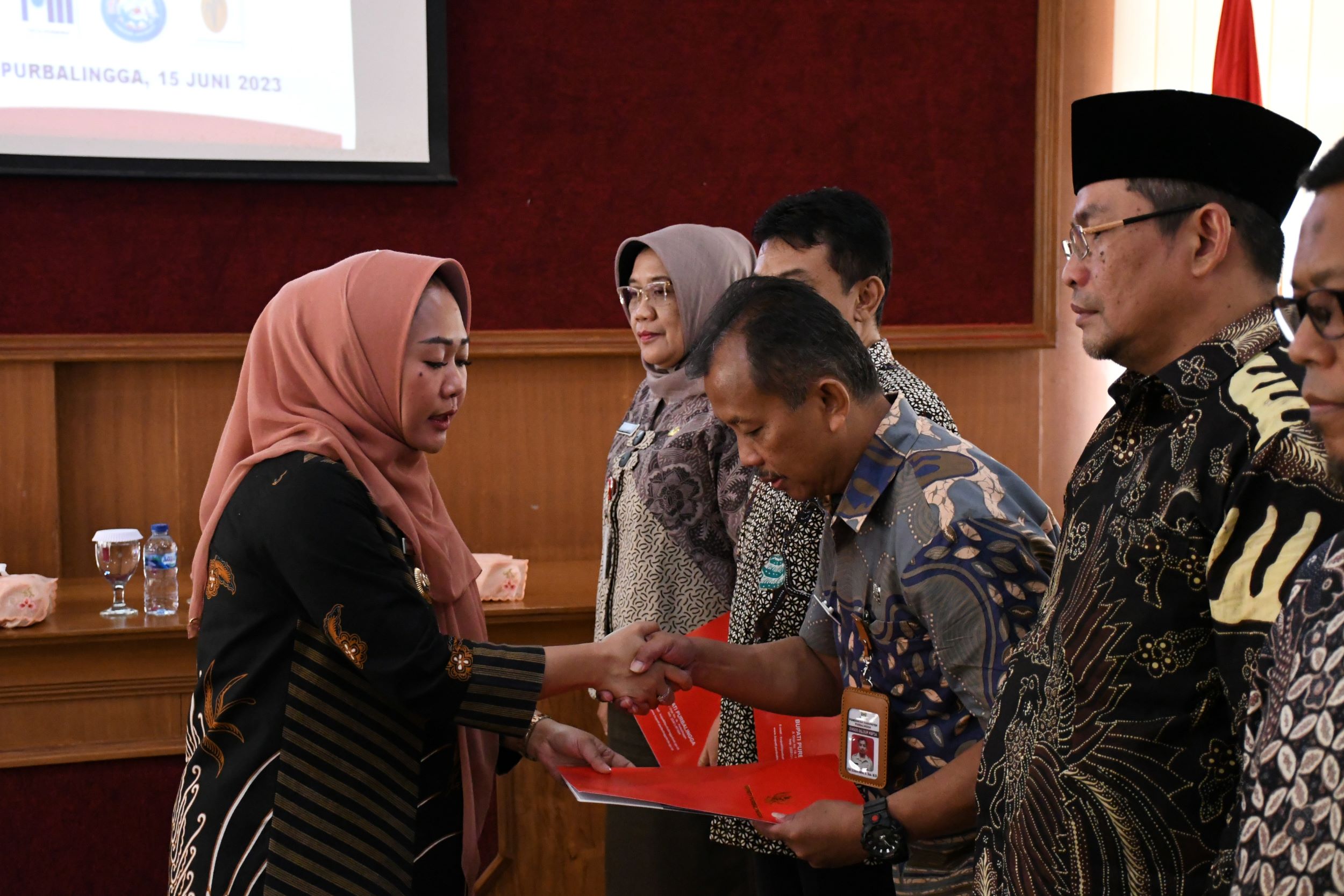 Purbalingga – Bupati Purbalingga Dyah Hayuning Pratiwi menyerahkan Surat Keputusan (SK) tentang Pengangkatan Dewan Pengawas (Dewas) / Komisaris Badan Usaha Milik Daerah (BUMD) untuk 6 orang Dewas / Komisaris pada empat BUMD. Bupati Tiwi menegaskan Dewas adalah kepanjangan tangan dari pemegang saham yaitu Pemerintah Kabupaten Purbalingga.