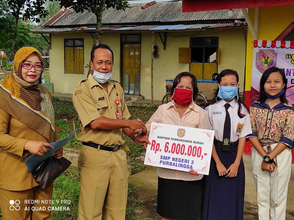 Bantuan diserahkan langsung oleh Kepala SMPN 3 Purbalingga, Subarno, S.Pd di rumah sederhana semi permanen yang kini dihuni Cresentia Anna bersama dua anaknya, di wilayah RT 1/RW 1 Desa Penaruban, Kecamatan Kaligondang, Purbalingga. Dua anak Cresentia Anna, yakni Yolanda Nadia Cahya Christyanti (17), alumni SMP Negeri 3 Purbalingga tahun 2018/2019 dan kini bersekolah di Kelas XI jurusan Tata Boga SMK Negeri 1 Bojongsari. Sedangkan adiknya, Ruth Lintang Pamudji (13), kini masih duduk di Kelas 8F SMP Negeri 3 Purbalingga.