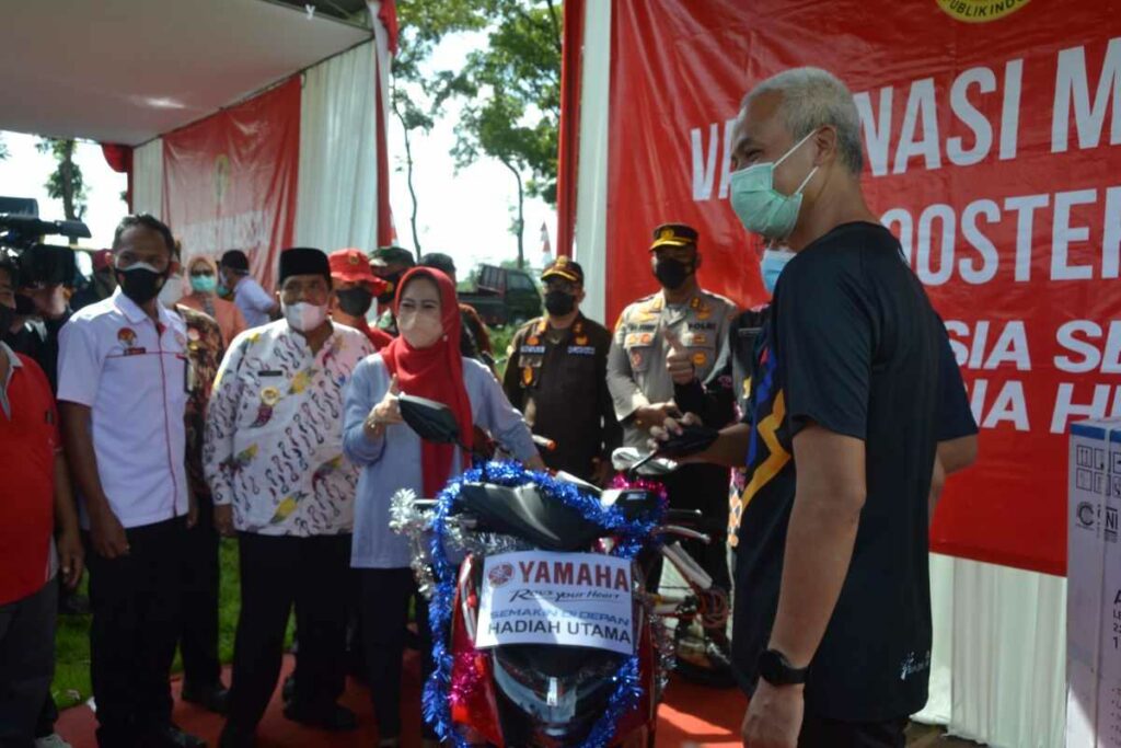 Gubernur juga mengapresiasi penyelenggaraan vaksinasi ini yang mengundang daya tarik. Diantaranya peserta berkesempatan membeli sembako murah, dan berkesempatan mendapatkan aneka hadiah seperti sepeda motor Yamaha Gear 125 senilai Rp 17 juta, kulkas, televisi dan sebagainya.