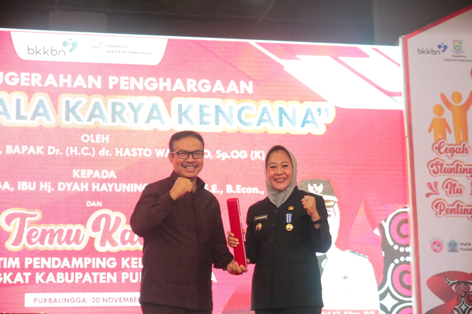 “Kami memberikan penghargaan ini karena program Bangga Kencana atau program pembangunan keluarga, kependudukan dan keluarga berencana di Purbalingga ini menjadi sukses karena dipimpin oleh seorang Bupati yang sangat luar biasa,” ungkap Hasto Wardoyo.