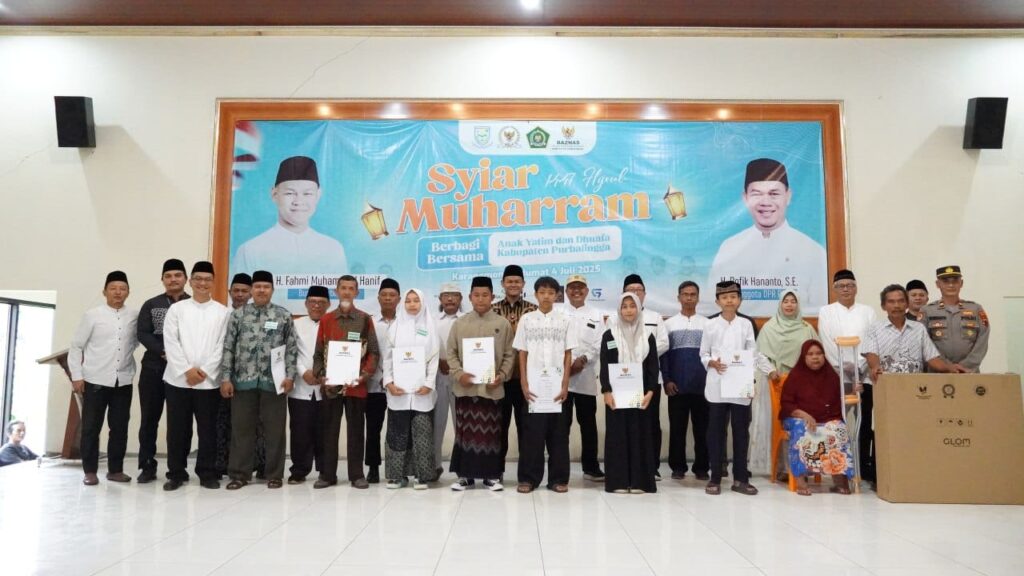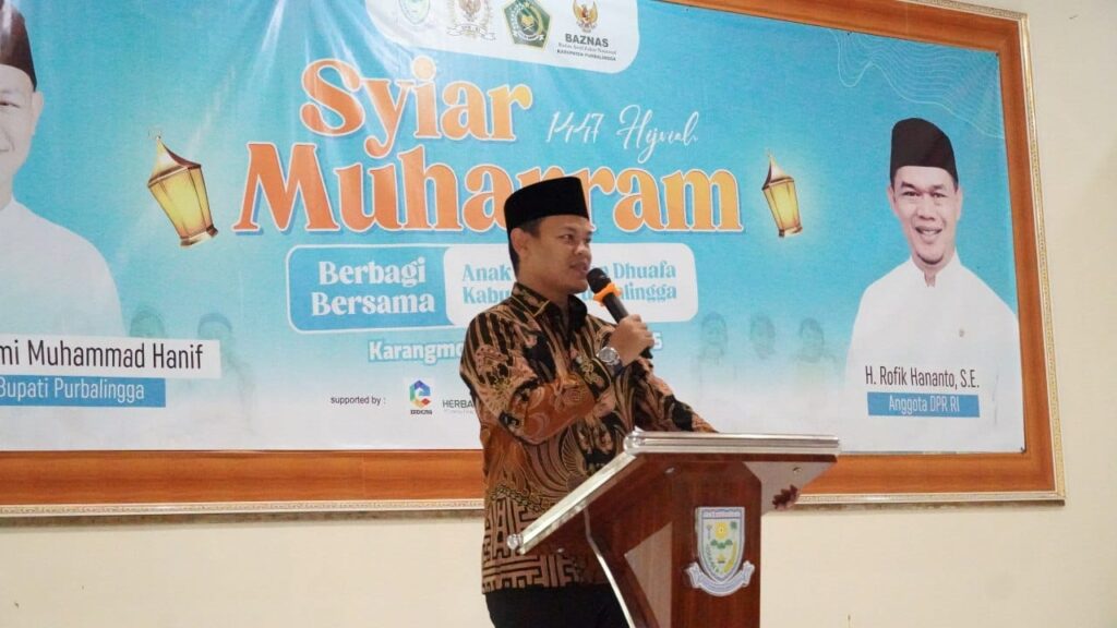PURBALINGGA – Bupati Purbalingga, H. Fahmi Muhammad Hanif melaksanakan kegiatan Syiar Muharam, Jumat (4/7/2025) di Gedung IPHI Kecamatan Karangmoncol Kabupaten Purbalingga. Kegiatan ini merupakan kolaborasi antara Pemerintah Kabupaten (Pemkab) Purbalingga, Baznas, dan organisasi serta tokoh Masyarakat Kabupaten Purbalingga.