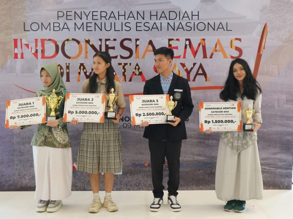 PURBALINGGA – Prestasi membanggakan kembali ditorehkan oleh pelajar asal Kabupaten Purbalingga. Tamara Rizkyanu Arta, siswi kelas XI SMA Negeri 1 Bukateja, berhasil meraih Juara 1 dalam Lomba Menulis Esai Nasional bertajuk “Indonesia Emas di Mata Saya”, yang diselenggarakan oleh Yayasan Bangkit Anak Bangsa bekerja sama dengan Ikatan Alumni Institut Teknologi Bandung (IA ITB).
