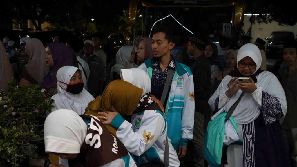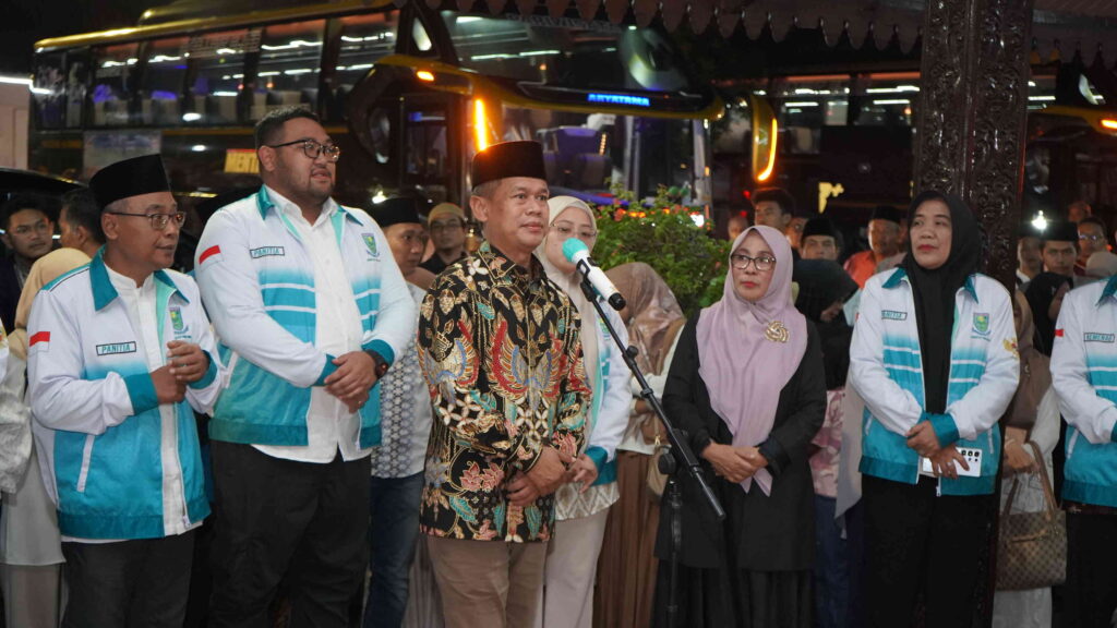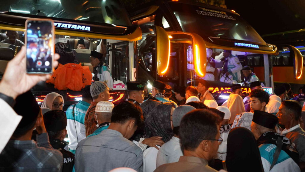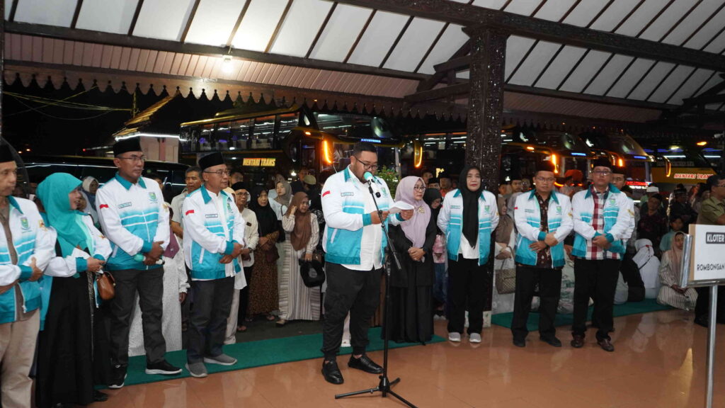 PURBALINGGA – Tangis haru mengiringi pemberangkatan 382 jemaah calon haji (calhaj) Kabupaten Purbalingga menuju Asrama Haji Donohudan Kabupaten Boyolali. Pemberangkatan jemaah calhaj kloter 1 dan 2 Kabupaten Purbalingga tersebut berlangsung, Rabu (30/4/2025) Pukul 22.30 WIB di Pendopo Dipokusumo. Sejumlah keluarga dan kerabat yang mengantarkan para jemaah calhaj nampak menitikan air mata haru.