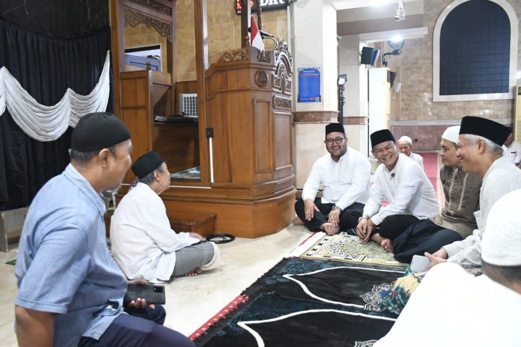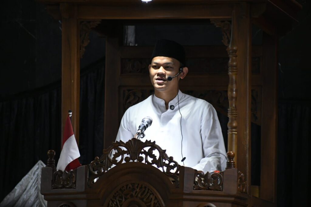 PURBALINGGA – Bupati Purbalingga Fahmi M Hanif (Fahmi) dan Wakil Bupati Purbalingga Dimas Prasetyahani (Dimas) melaksanakan salat Isya dilanjutkan tarawih pertama Ramadan 1446 H bersama masyarakat Kabupaten Purbalingga di Masjid Agung Darussalam, Jumat (28/02/2025). Bertindak sebagai imam, Kiai Achmad Kamal Ismail.