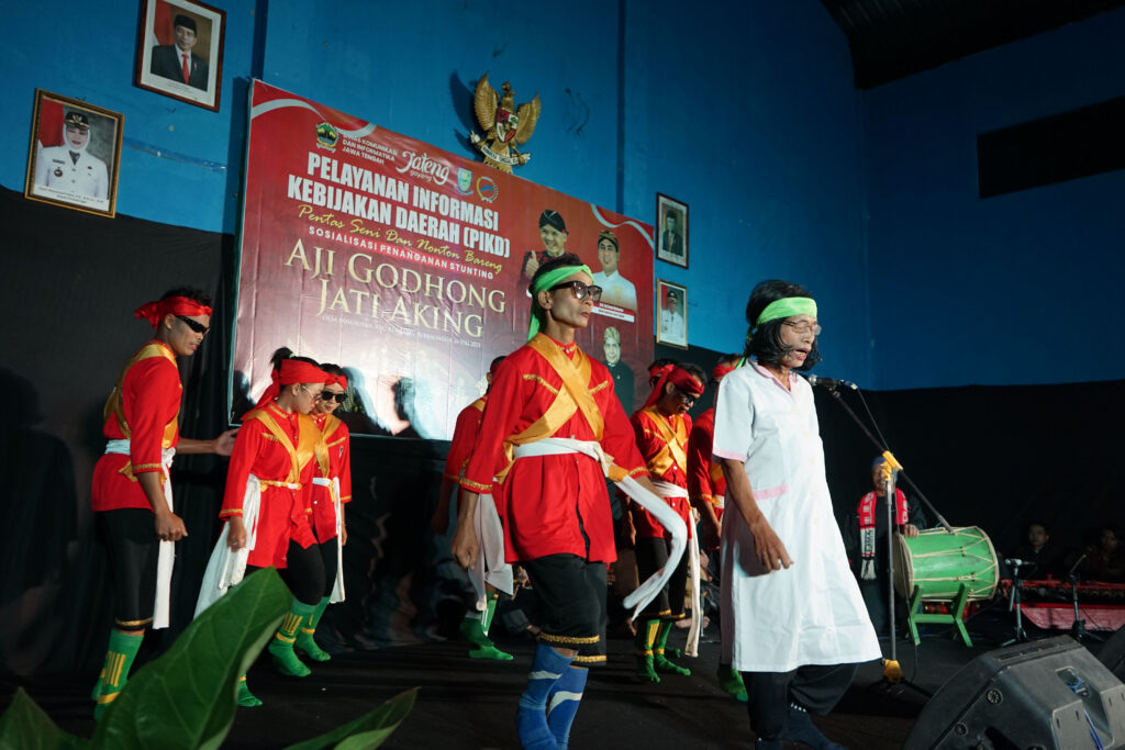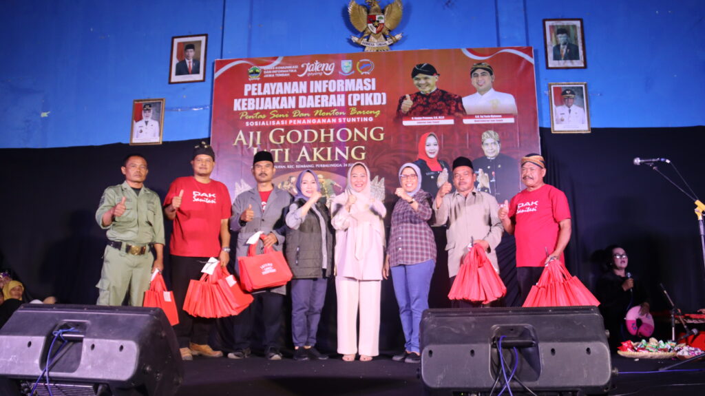 PURBALINGGA – Dalam rangka penurunan prevalensi stunting, Pemerintah Daerah melalui Dinas Komunikasi dan Informatika (Diskominfo) Provinsi Jawa Tengah berkolaborasi dengan Dinkominfo Kabupaten Purbalingga menggelar Pelayanan Informasi Kebijakan Daerah (PIKD) melalui pentas seni media tradisional. Pagelaran tersebut berlangsung di aula balai Desa Panusupan, Kecamatan Rembang, Kabupaten Purbalingga, Senin (24/7) malam.