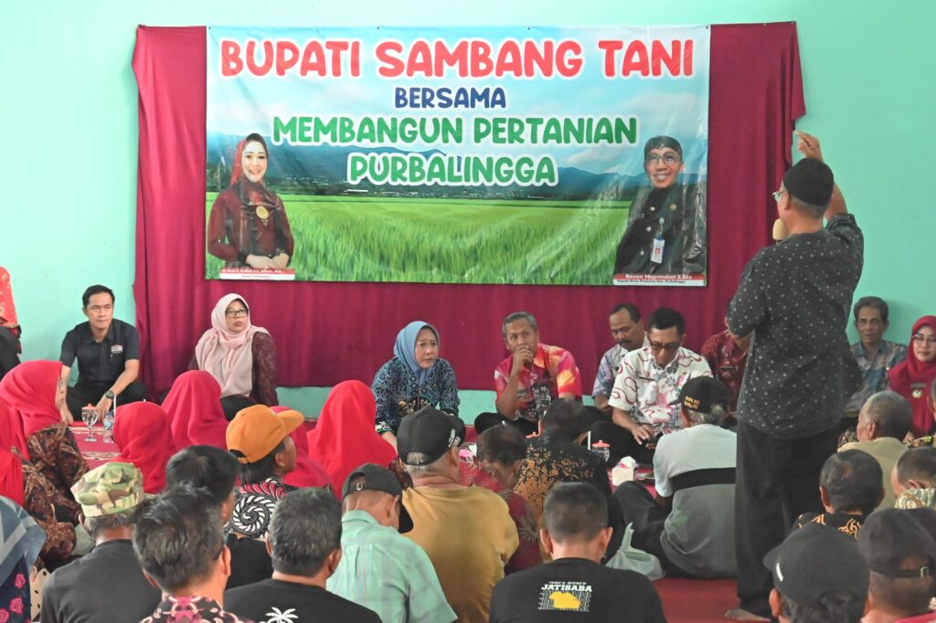 PURBALINGGA – Bupati Purbalingga Dyah Hayuning Pratiwi menemui para petani se-Kecamatan Purbalingga (Kecamatan Kota). Bupati Tiwi menyerap aspirasi apa yang menjadi kendala dan kebutuhan mereka agar produktivitas pertanian di kecamatan kota bisa meningkat.