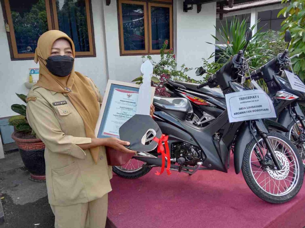 “Kami menyampaikan terima kasih kepada Ibu Bupati yang telah memberikan penghargaan kepada kami berupa sepeda motor untuk menambah armada operasional Pemdes Limbasari,” ujarnya.
