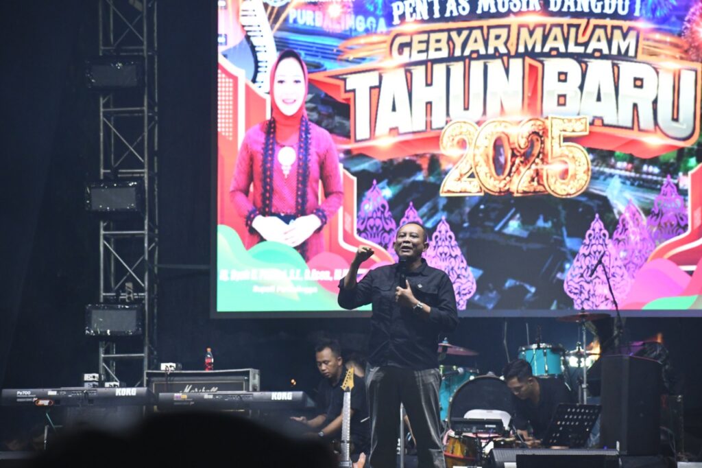 PURBALINGGA – Malam pergantian tahun di Purbalingga berlangsung meriah dengan gelaran konser musik di tiga lokasi sekaligus, Selasa (31/12/2024). Acara ini sekaligus menjadi penutup rangkaian peringatan Hari Jadi ke-194 Kabupaten Purbalingga yang berlangsung sepanjang bulan Desember.