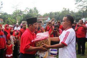 Sebelum bertanding, Bupati Tasdi dan Wabup Tiwi membagikan bantuan masing-masing seberat 5 kilogram, 440 kantung beras Rasbangga, 40 paket tambahan makanan (PMT) bagi ibu hamil dan 15 paket PMT untuk balita serta bantuan 1 unit kursi roda. Sedangkan untuk tim kesebelasan sepakbola pemuda desa Penican Kecamatan Kemangkon, Bupati menyerahkan 2 kostum tim beserta 4 buah bola.