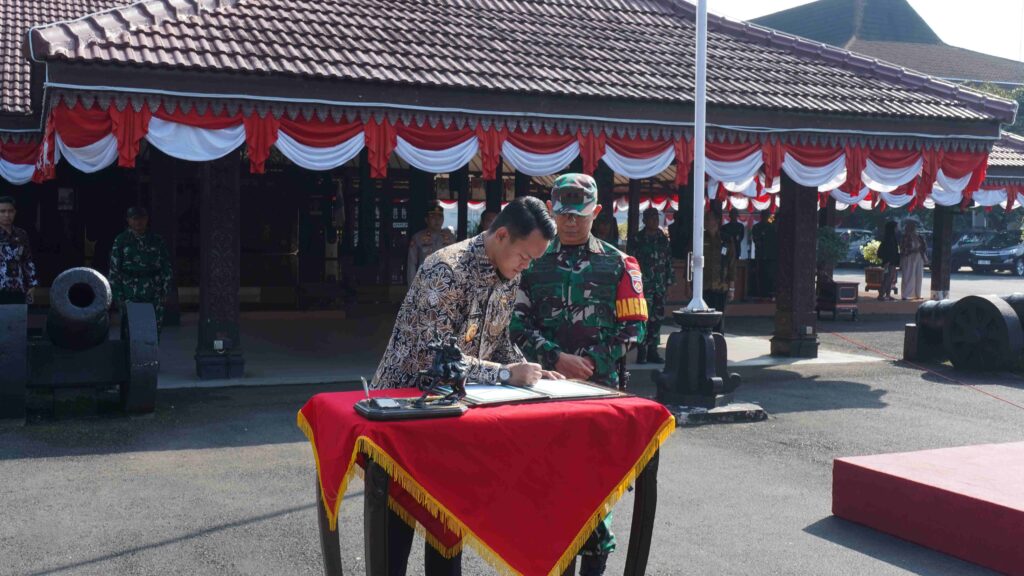 Bupati Purbalingga, H. Fahmi M. Hanif menandatangani laporan hasil pelaksanaan TMMD Sengkuyung Tahap III Tahun 2025