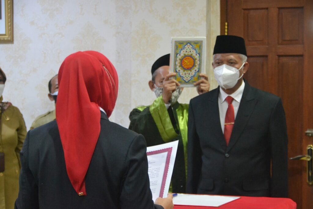 “Oleh karenanya saya titip kepada Pak Agus, mengingat kita ini akan melakukan agenda-agenda strategis, salah satunya penetapan APBD Perubahan dan juga pembahasan APBD 2022, maka sebelum ditunjuk dan dilantik Sekda definitif saya berharap Pak Agus untuk menjalankan tugas sebagai Pj Sekda dengan baik,” tutur Bupati.
