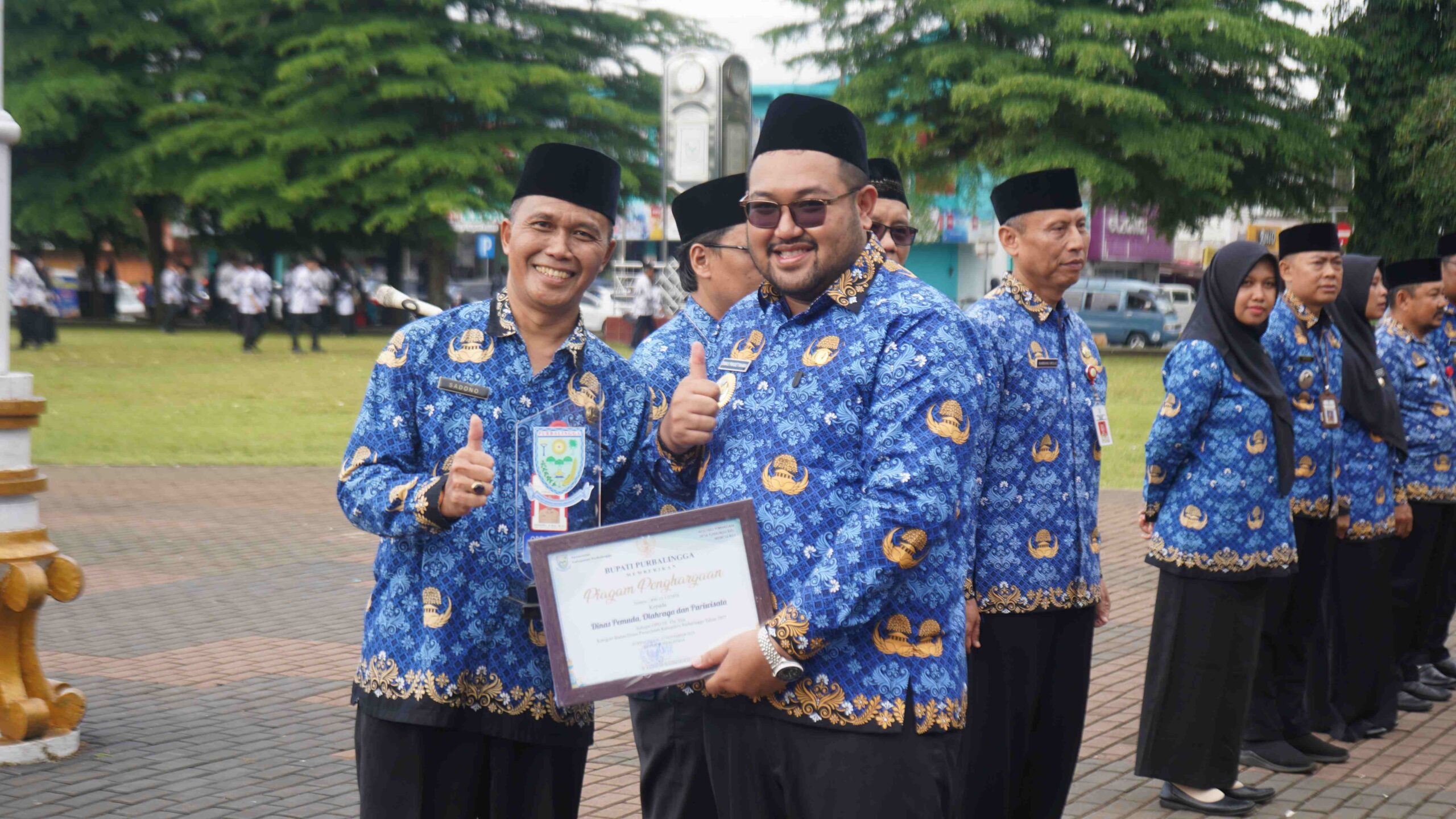 Usai pelaksanaan upacara, Wabup Dimas menyerahkan berbagai penghargaan baik individu maupun dinas. Penghargaan pertama yakni Satyalancana Karya Satya X, XX, dan XXX tahun kepada 100 ASN di lingkungan Pemerintah Kabupaten (Pemkab) Purbalingga. Tanda kehormatan ini diberikan atas pengabdian, kecakapan, dan kesetiaannya kepada negara.