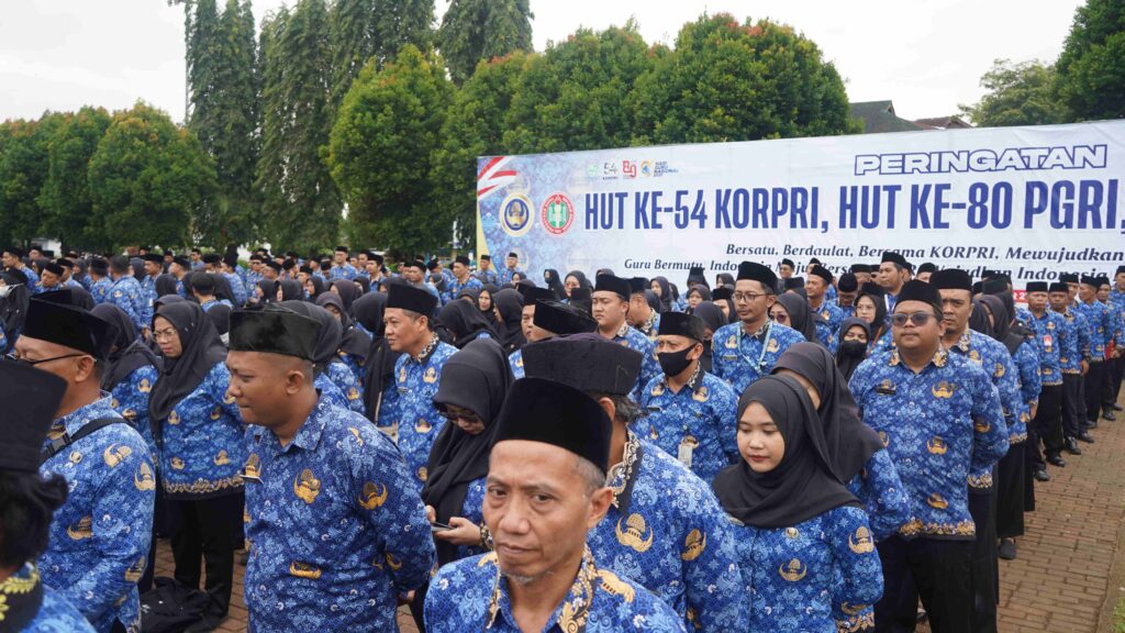 PURBALINGGA – Wakil Bupati (Wabup) Purbalingga, Dimas Prasetyahani mengapresiasi kerja keras KORPRI dan PGRI dalam mengabdi kepada negeri khsusunya Kabupaten Purbalingga. Hal tersebut disampaikannya saat pelaksanaan uparaca Hari KORPRI ke-54 yang disatukan dengan peringatan Hari PGRI ke-80 dan Hari Guru Nasional (HGN) 2025 di Alun-alun Kabupaten Purbalingga, Senin (1/12/2025).