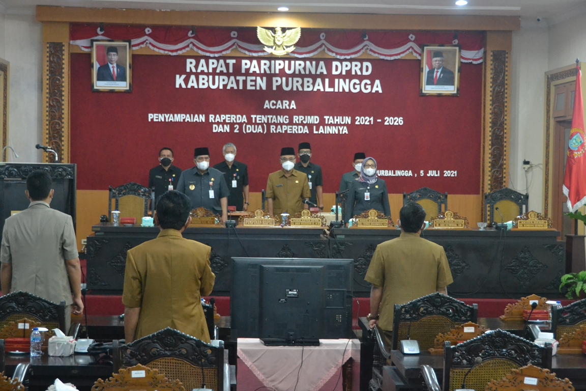 Penyerahan ini ditandai dengan penyerahan dokumen yang dilaksanakan oleh Wakil Bupati Purbalingga H Sudono ST MT kepada Wakil Ketua DPRD H Aman Waliyudin SE MSi dalam Rapat Paripurna DPRD. Wakil Bupati Purbalingga H Sudono ST MT menjelaskan, melalui Raperda RPJMD 2021 – 2026 yang sudah disusun itu, Ia optimis Perekonomian Kabupaten Purbalingga akan tumbuh semakin baik.