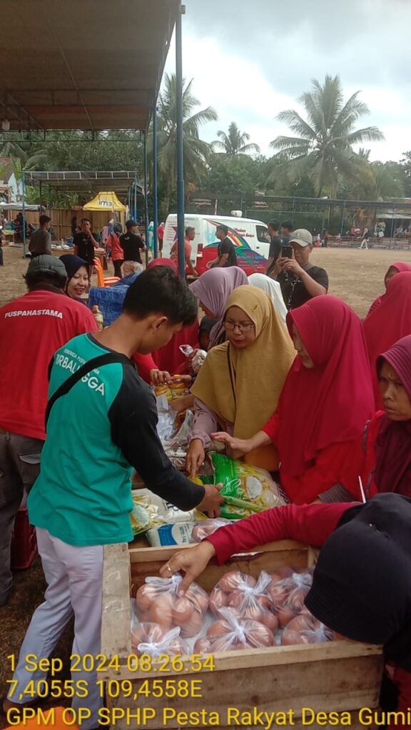 Yudi menambahkan, bekerjasama dengan Karang Taruna Desa Gumiwang GPM digelar bersamaan dengan momen karnaval dalam rangka HUT RI ke-79. Warga nampak begitu antusias untuk berbelanja bahan kebutuhan pokok di bazar yang dijual dengan harga di bawah pasar dan omset sekitar 15 juta rupiah dari penjualan sembako.