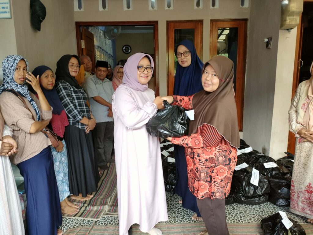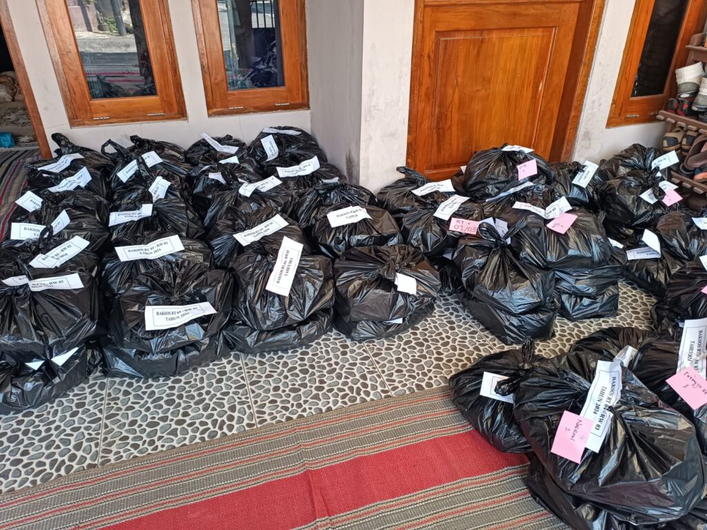“Nantinya akan disampaikan kepada penggali kubur 15 paket, tukang sampah yang biasa berkeliling di lingkungan RT.04 RW.03 4 paket, 12 paket untuk asisten rumah tanggga, untuk warga RT 04/RW 03 sejumlah 6 paket, untuk tetangga RT 2 paket, untuk warga nasrani 3 paket dan sisanya sebanyak 78 paket dibagikan ke warga Kelurahan Karangmanyar melalui kader kesehatan dilingkungan masing – masing,” terangnya.