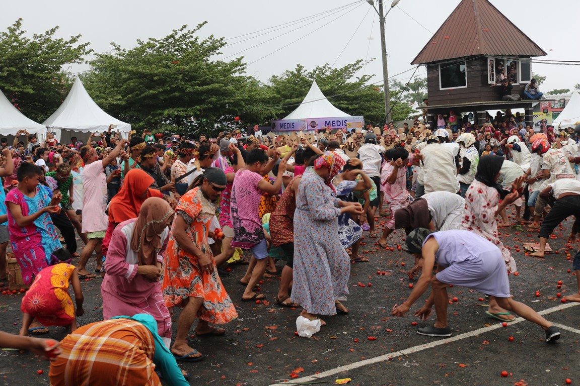 “Perang tomat mengandung filosofi pada asal usul terbentuknya Desa Serang di masa lalu,” kata Agus.