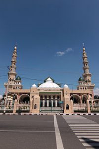 Masjid Agung Darussalam dibangun pada 1853 M/1269 H oleh KH Abdullah Ibrahim. Pembangunan dilakukan di atas tanah seluas 5.500 meter persegi. Sampai dengan saat ini masjid tersebut telah mengalami renovasi lima kali. Masing-masing pada tahun 1918, 1960, 1970, 1980-1985 dan terakhir pada tahun 2002-2004. Dana yang dialokasikan pada rehab terakhir mencapai Rp 2 miliar.